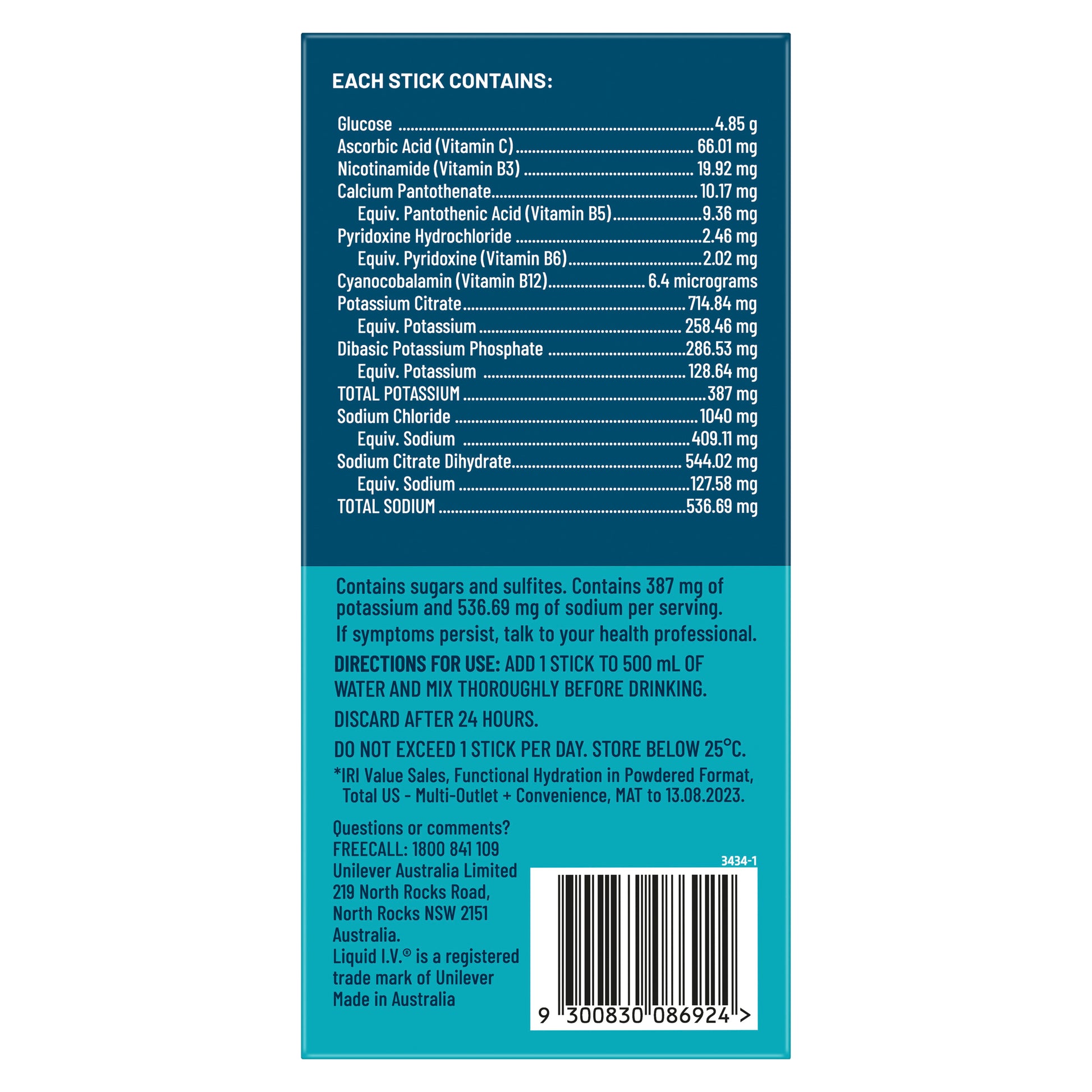 • Liquid I.V.® Hydration Multiplier Passionfruit Electrolyte Drink Mix hydrates faster than water alone and is free from artificial colours and sweeteners.